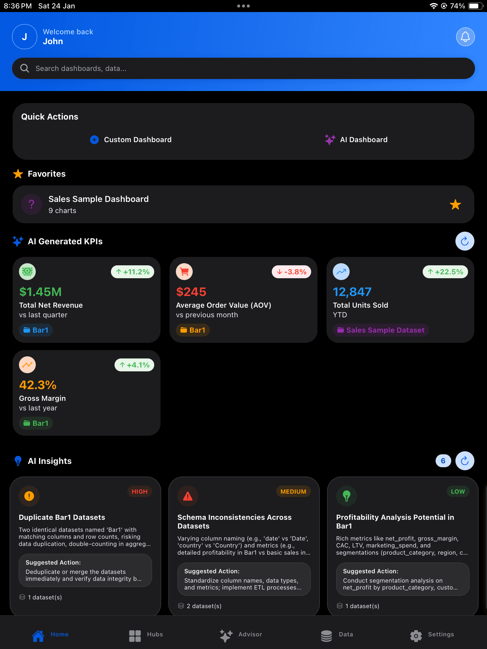 We reimagined analysis as a conversation. Don't build charts; simply ask. The Advisor understands your intent, scans your metrics, and delivers the answer in plain English.